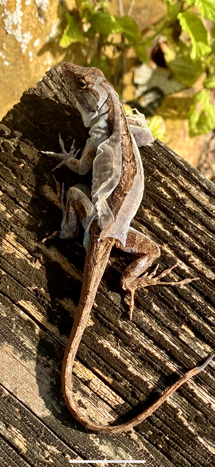 As I mentioned, on Sunday, I believed Brownie was dying. The previous day the American President had talked about his worries regarding “Armageddon” in a conversation with Democratic donors. I bought and filled up four extra canisters of gasoline and 200 cans of tuna fish from Aldi that morning–in case the world might end. So I was in an already apocalyptic mindset when I found a brown anole clinging listlessly to the inside of the screening of the patio area downstairs. For some reason, I immediately concluded that it was Brownie, even though I remember thinking that this anole seemed crinkled and shrunk. I thought that maybe it was part of the dying process. When I touched the lizard who I believed was Brownie he would barely move, briefly open his eyes, and then slowly close them again. I could see him breathe. It was heart-wrenching and made me cry. I kneeled next to him, thanked him for the times together, and said my good-byes.