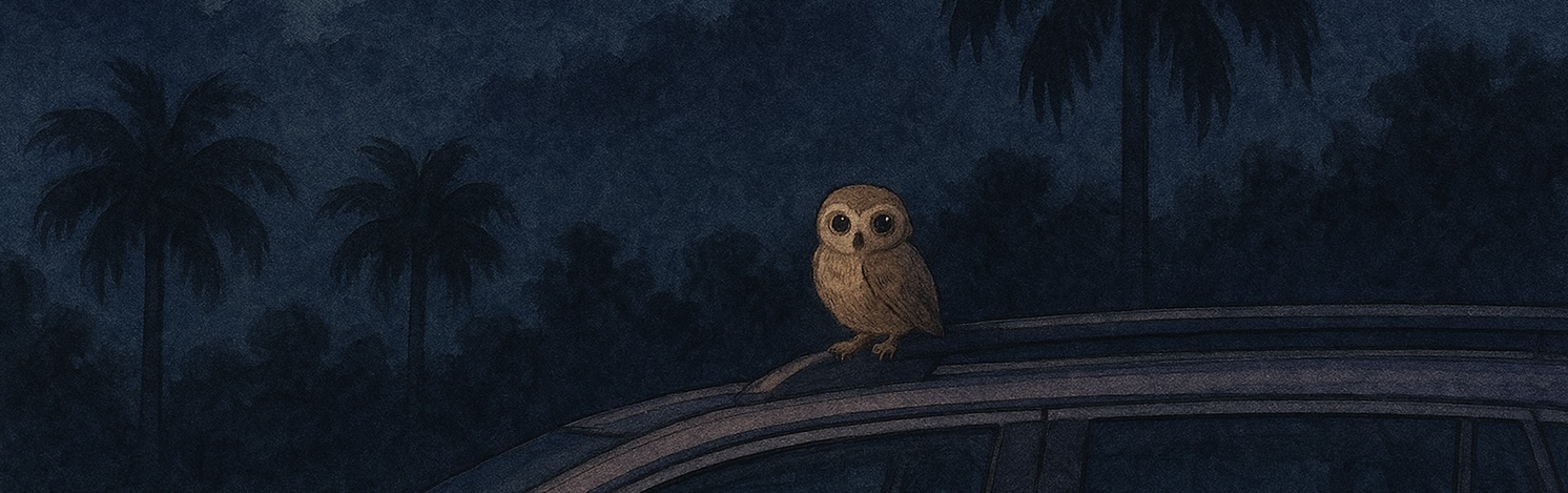 There was a small owl sitting on my car at the farm when I got up at 3 AM to make my night drive to the beach. I walked up to the patio screen and said “jabba jabba” to it. The owl kept sitting on the roof of my car, looking at me and rotating its cute head left and right, as owls do. After a few minutes, I went back inside to finish packing my stuff for the trip. When I came outside again, the owl was gone.